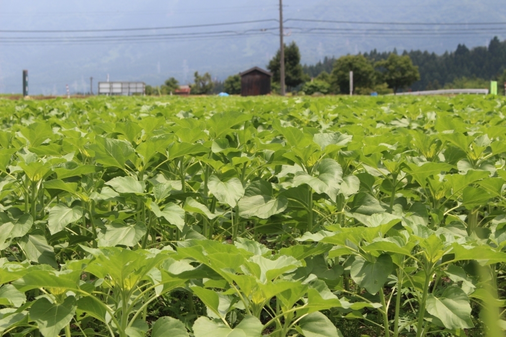 双葉から本葉が出てきました 〜支配人のひまわり日記〜こんばんは。桜ヶ池クアガーデンの西川でございます。 今日は暑い日でしたね。 皆様、いかがお過ごしでしたでしょうか? 少し、涼しくなったのでひまわり畑へ行って成長を確かめてきました。 まだま