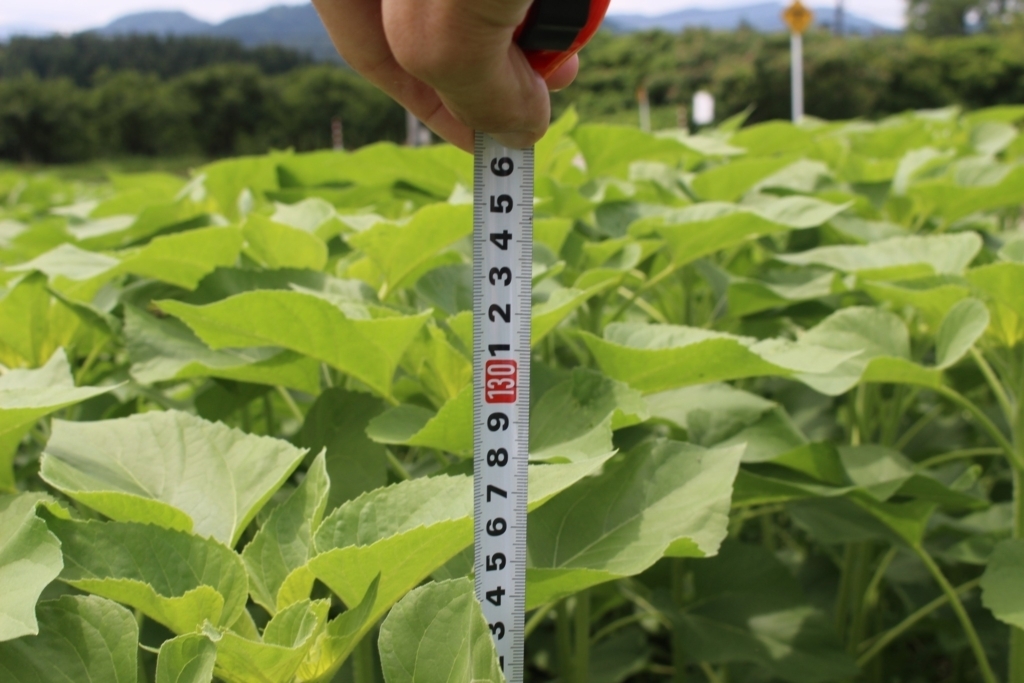 130センチまで成長 〜支配人のひまわり日記〜こんにちは。桜ヶ池クアガーデンの西川です。 今日も暑い日になりました。 皆様、熱中症には気を付けて過ごしましょう。 さて、クアガーデンの裏の畑の状況です。