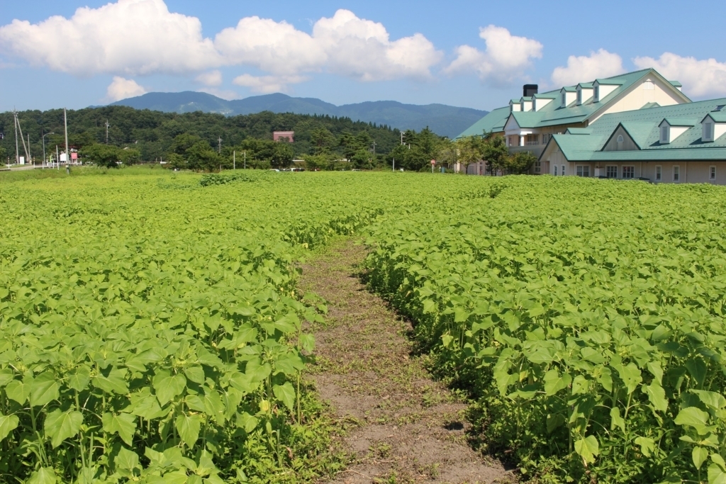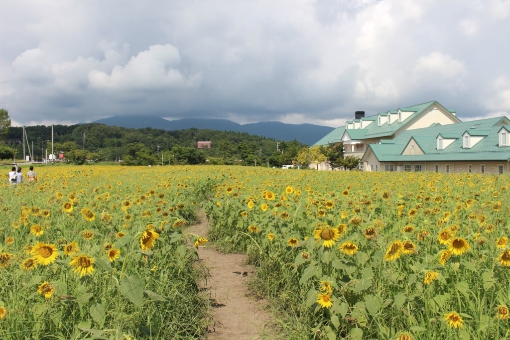 ひまわり日記~7、8分咲き~ひまわりメニューもぜひどうぞこんにちは。桜ヶ池クアガーデンの西川です。 本日の「桜ヶ池ひまわり畑」の様子をごらんください。 今日は7、8部咲きくらいでしょうか? クアガーデンではひまわりをイメージしたキーマカレーや