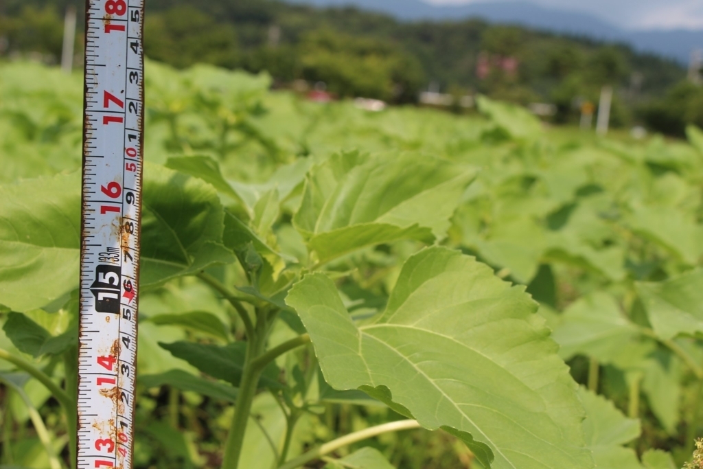 50センチ程度に成長 〜支配人のひまわり日記〜こんにちは。桜ヶ池クアガーデンの西川です。 約1週間経ちましたので現在のヒマワリの様子です。 平均的には50センチ程度に成長しています。 一番、長いところで80センチ~90センチになってきました