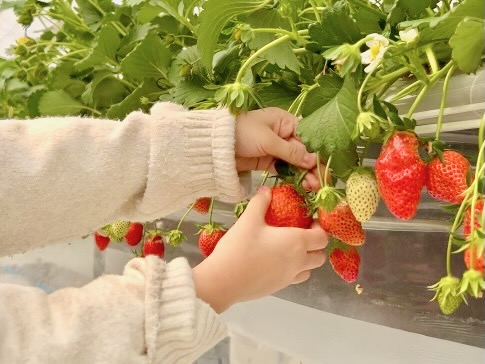 いちご狩り(5月末まで土日祝)ハウスだからどんな天気でも いちご狩りのできるスポット アクセス:桜ヶ池クアガーデンから車で20分 「遊花園さん」では5月末まで土日祝にいちご狩りを楽しめます。 高設水耕栽培でお子