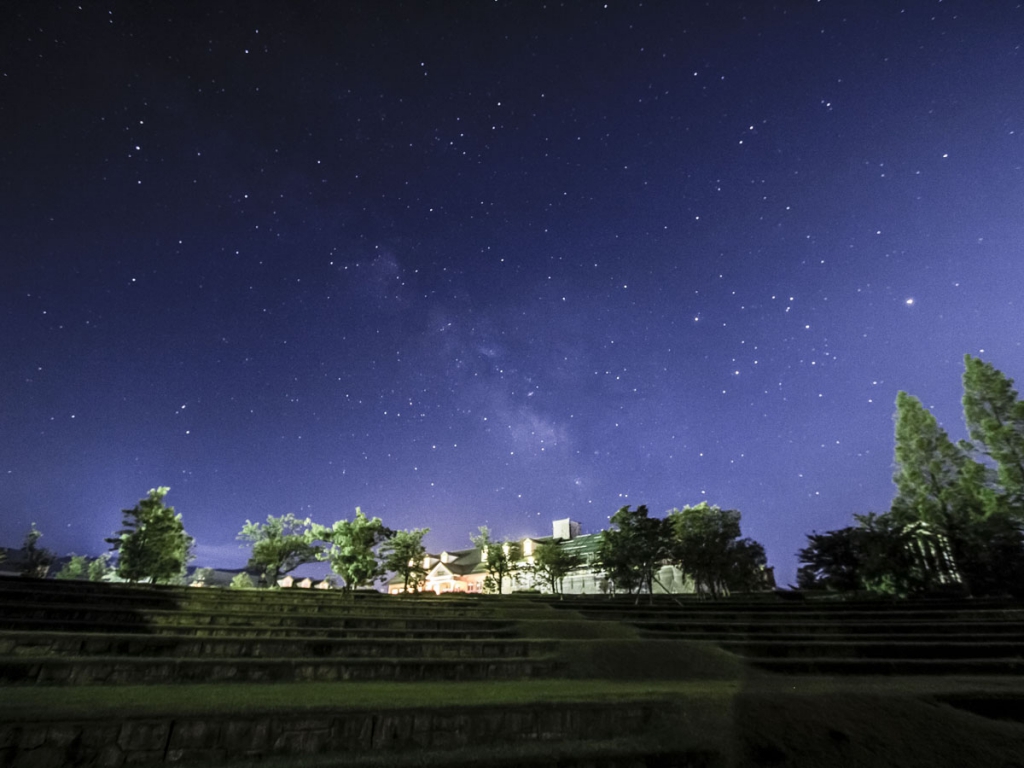 春夏秋冬 満天の星空をご覧いただけますとなみ野の丘の上にある桜ヶ池クアガーデンでは、 夜になると空いっぱいに広がる星空をご覧いただけます。