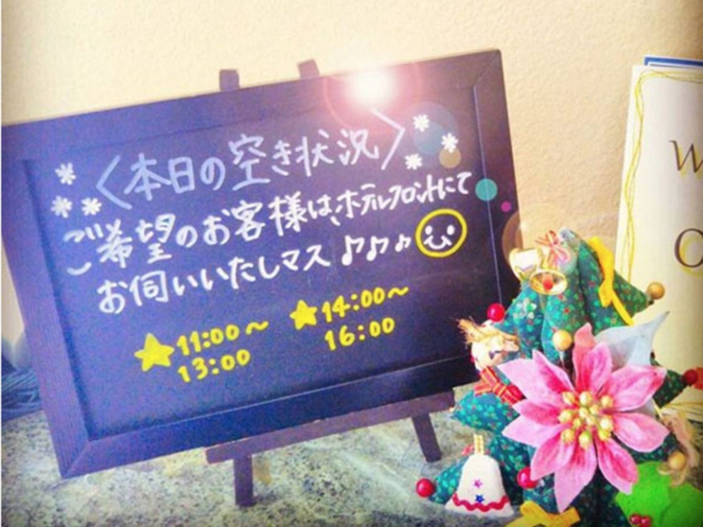 トリートメント空き状況をミニボードでお知らせしています!〜南砺のスパでトリートメント〜セラピー棟入口では その日のトリートメント空き状況を ミニボードでお知らせしています! ご来館されてからトリートメントを受けたい! と思われた方もお気軽に覗いてみて下さい(*^^*