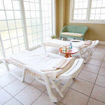 プール・サウナ・トリートメントなどの後、デッキチェアーでゆっくりとリラクゼーションが出来ます。