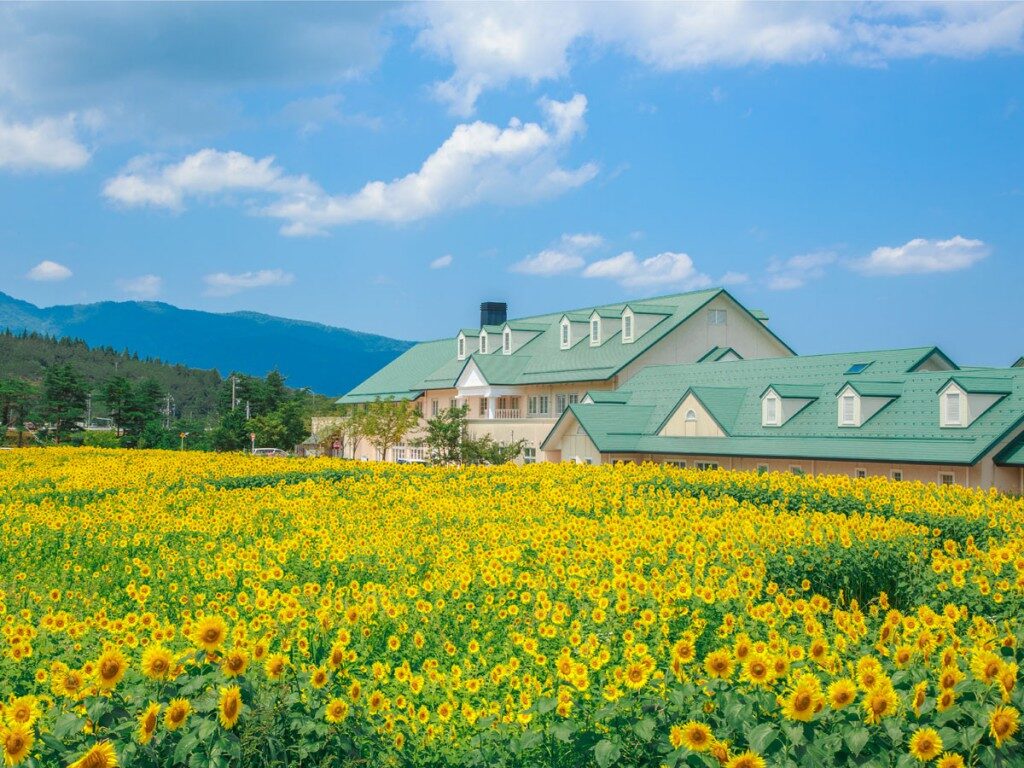 ひまわり畑、満開!迷路をお楽しみ頂けますこんにちは桜ヶ池クアガーデンです。 眩しい太陽、青い空、夏真っ盛り!!! 当館南側ひまわり畑はキラキラ鮮やかにひまわりが咲き誇っています! いままさに見頃です。 (建物の裏の駐車場