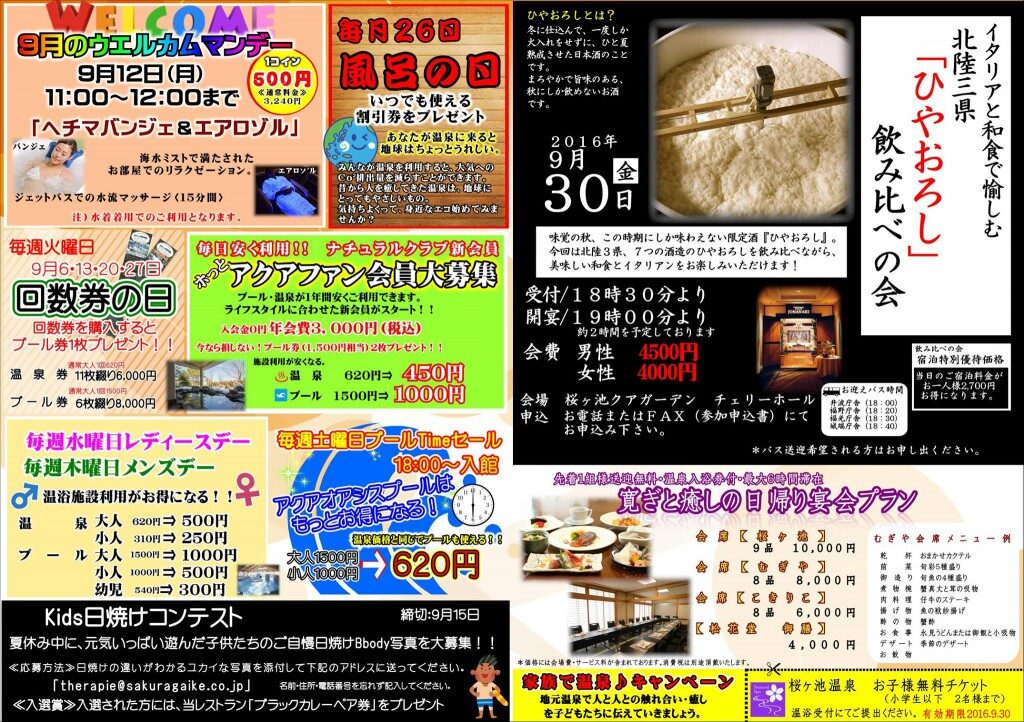 9月もたくさんのイベントを行っています♪こんにちは桜ヶ池クアガーデンです。 9月もたくさんのイベントを行っています。 是非、ご参加お願いいたします。