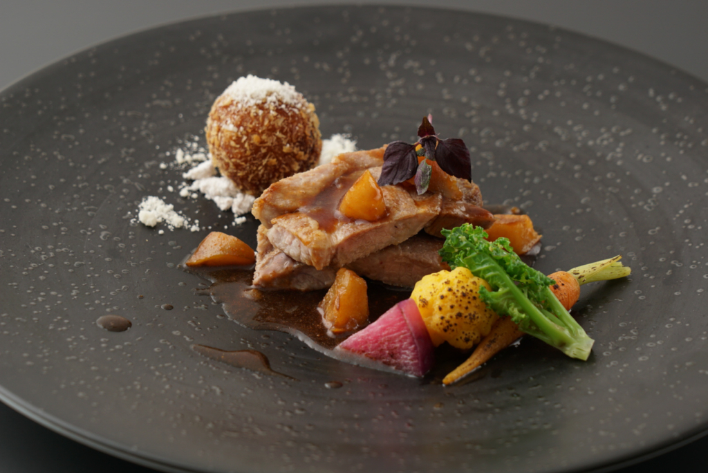 【冬めぐりラ グラースコース】柿皮育ちの地元産なんとポーク&アンコウを楽しむフルコース