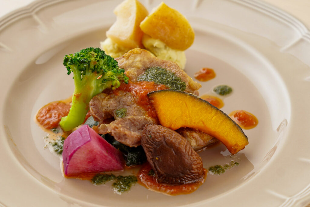【南砺ポークのソテー トマトバジルソース】 1,980円(税込)