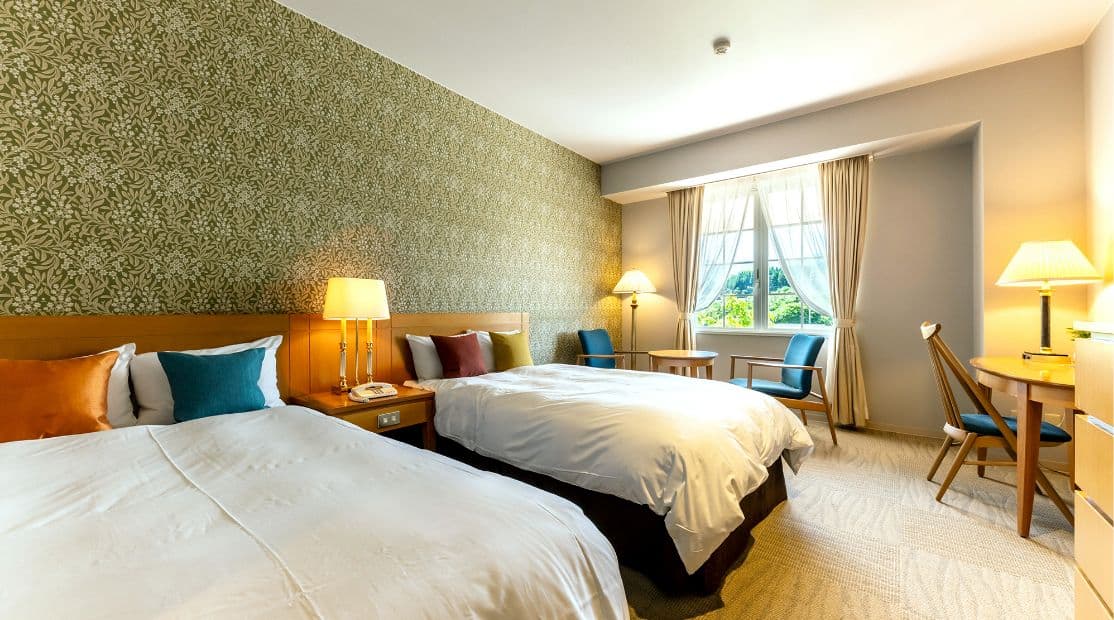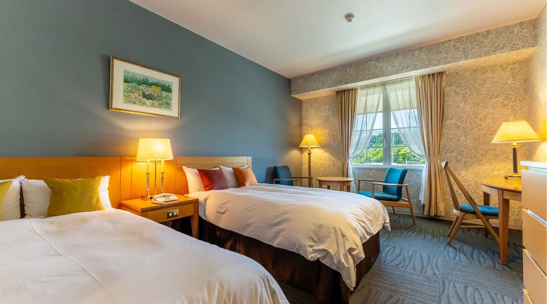 ※セミダブルベッド2台と、エキストラベッド使用により、最大3名様でご宿泊いただけます。