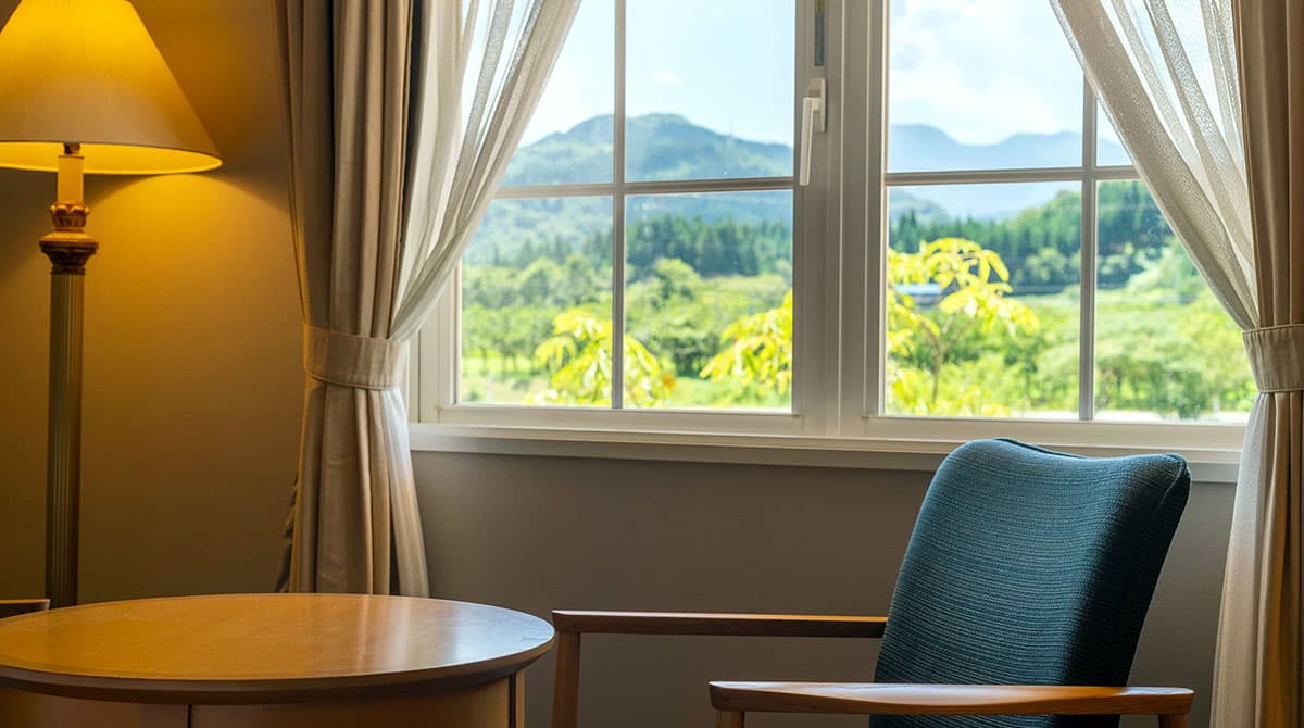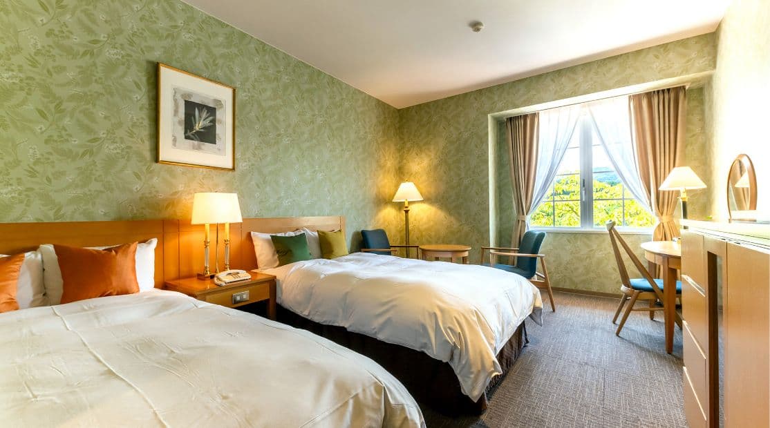 里山山麓をのぞむ客室